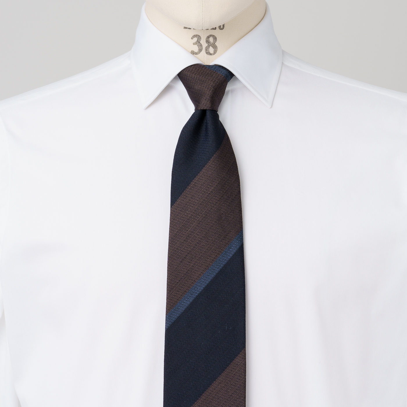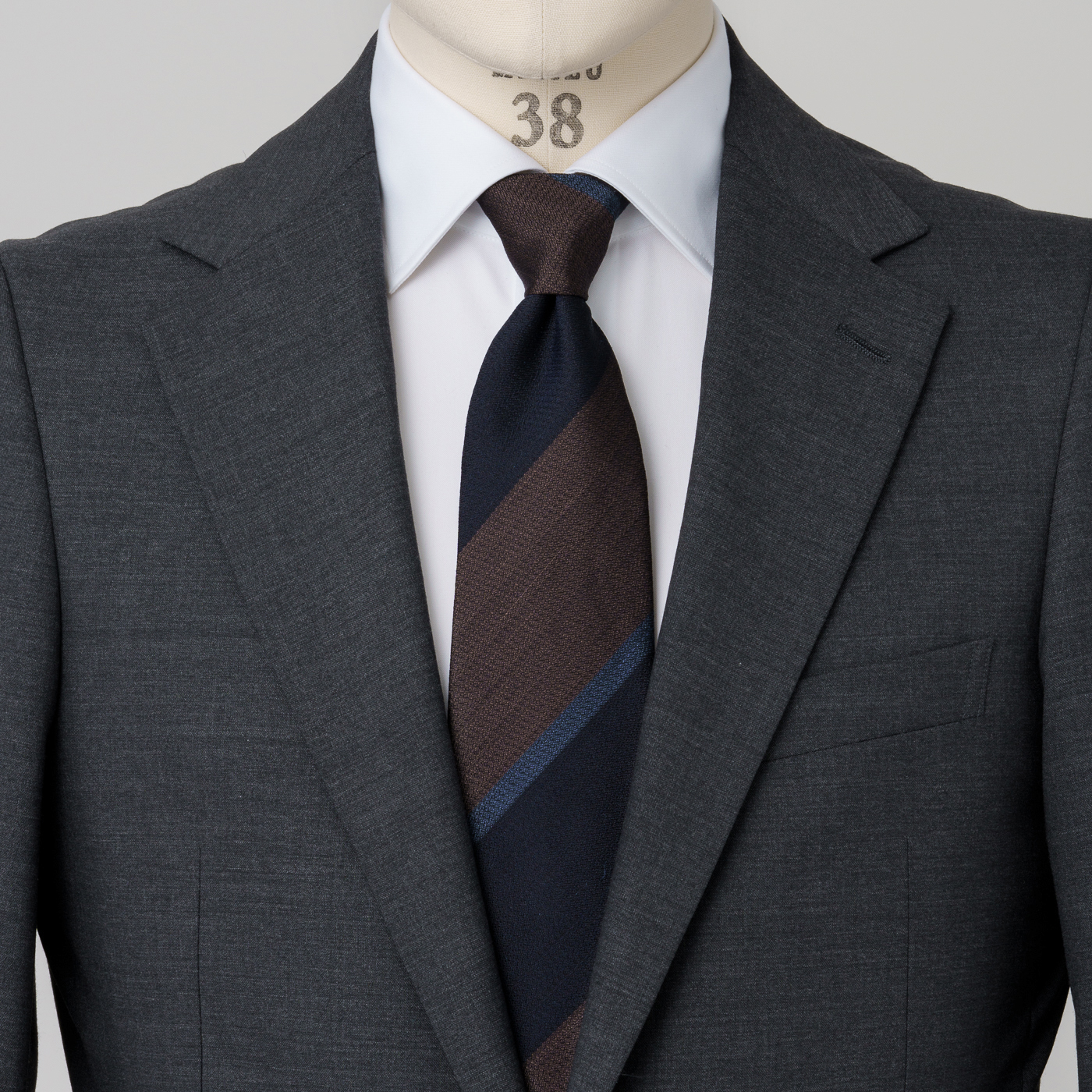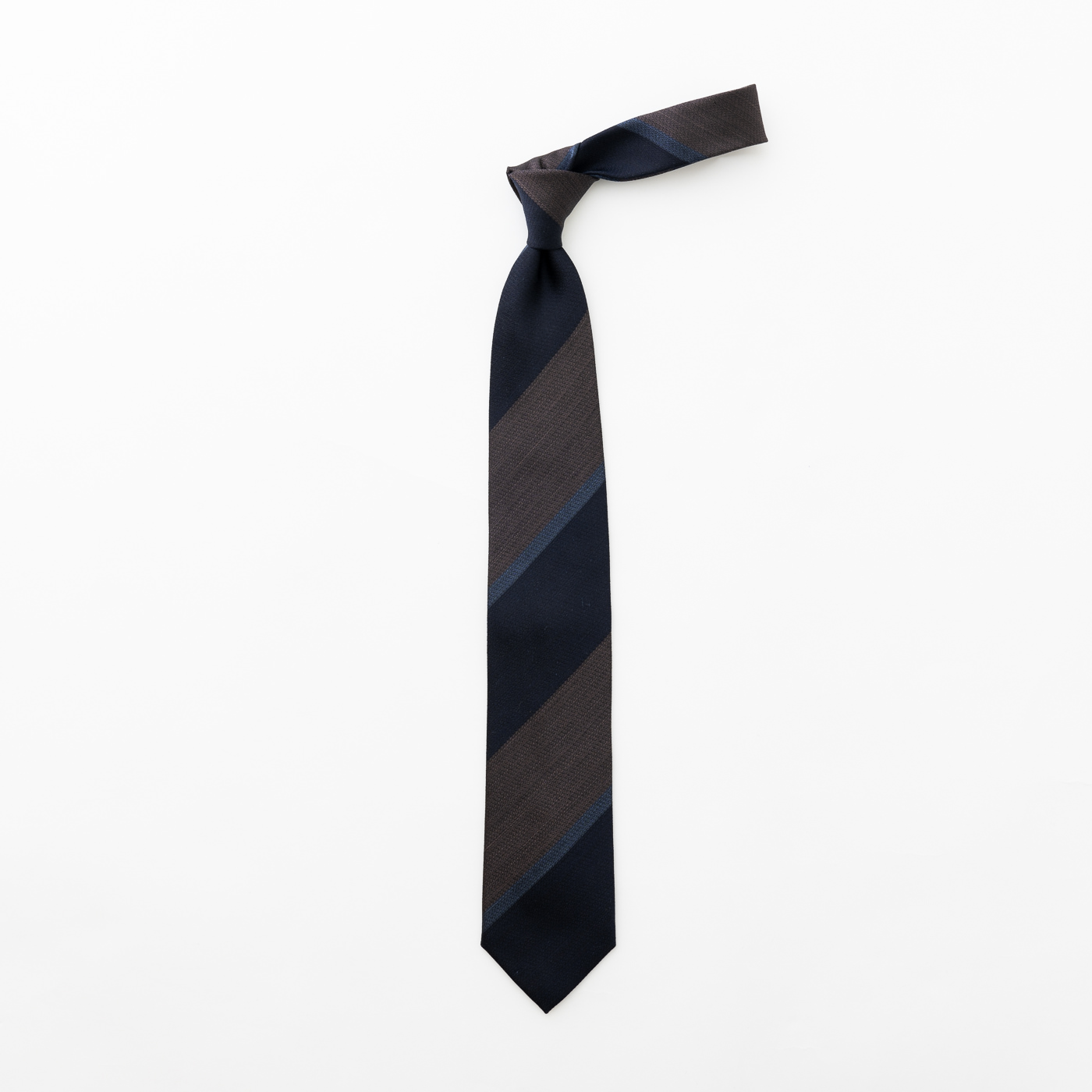 ベーシックなレジメンタルでも、色使いや幅を変えれば一気に違う雰囲気に。