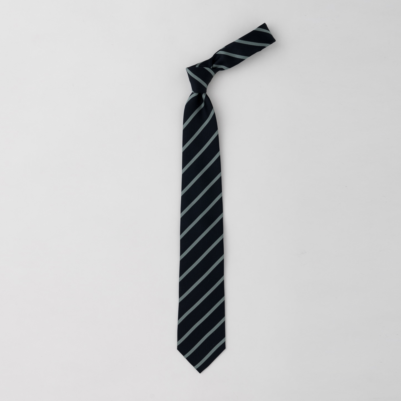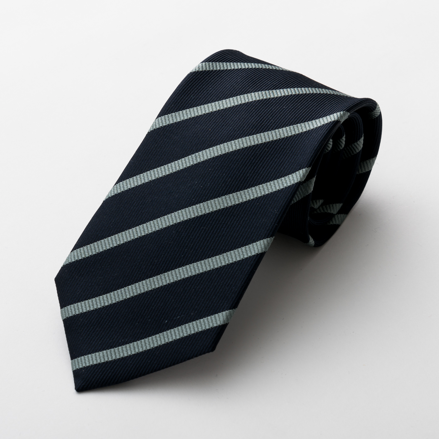 ベーシックなレジメンタルでも、色使いや幅を変えれば一気に違う雰囲気に。