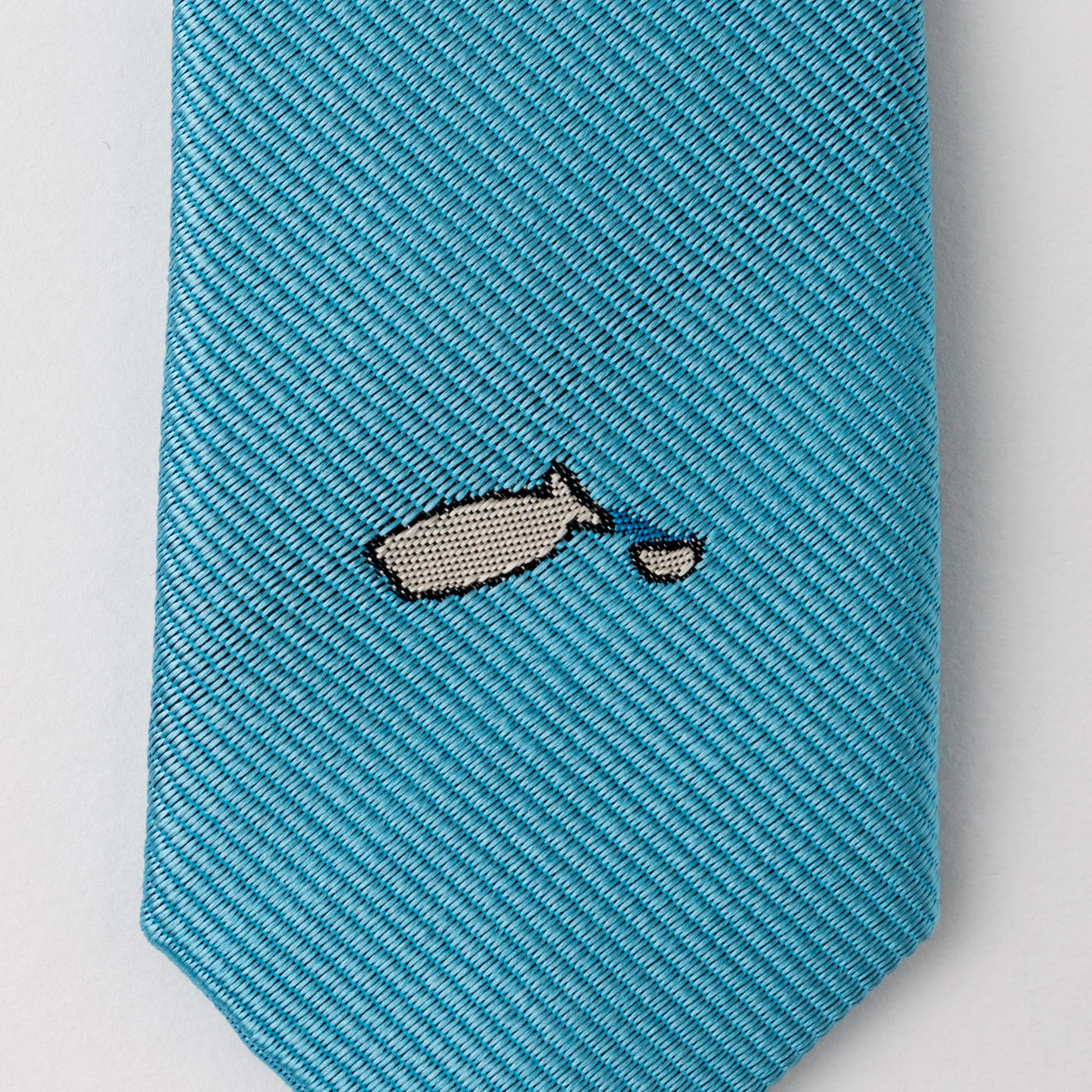 グレースーツとネイビーネクタイの鉄板コンビ。定番のコーディネートに遊びを効かせるなら、裏にモチーフがデザインされたネクタイがおすすめです。ジャケットを着用するとモチーフ部分は隠れますが、見えないおしゃれが楽しめて気分も上々です。