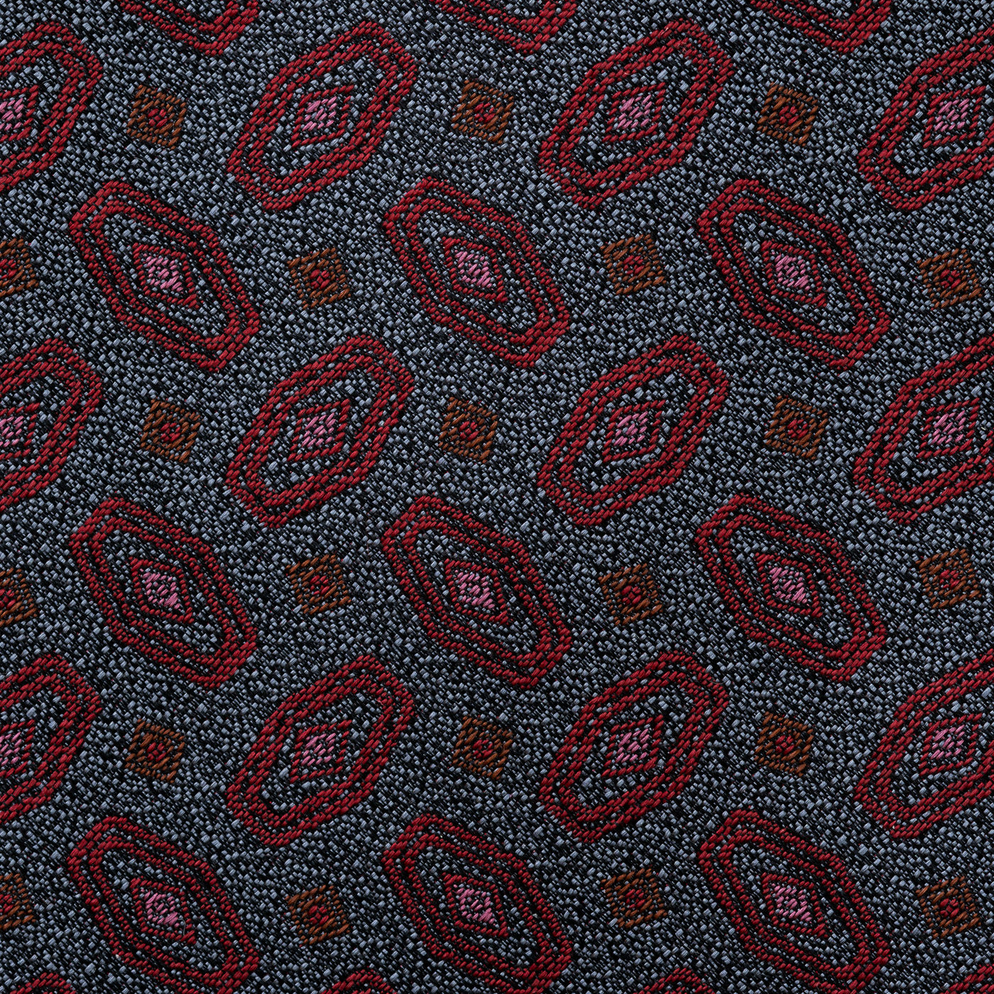 模様が大きいとカジュアルに、小さいとクラシカルな印象になります。ストライプやチェックなどのネイビースーツには、小紋柄のネクタイを合わせるとバランスよくまとまります。