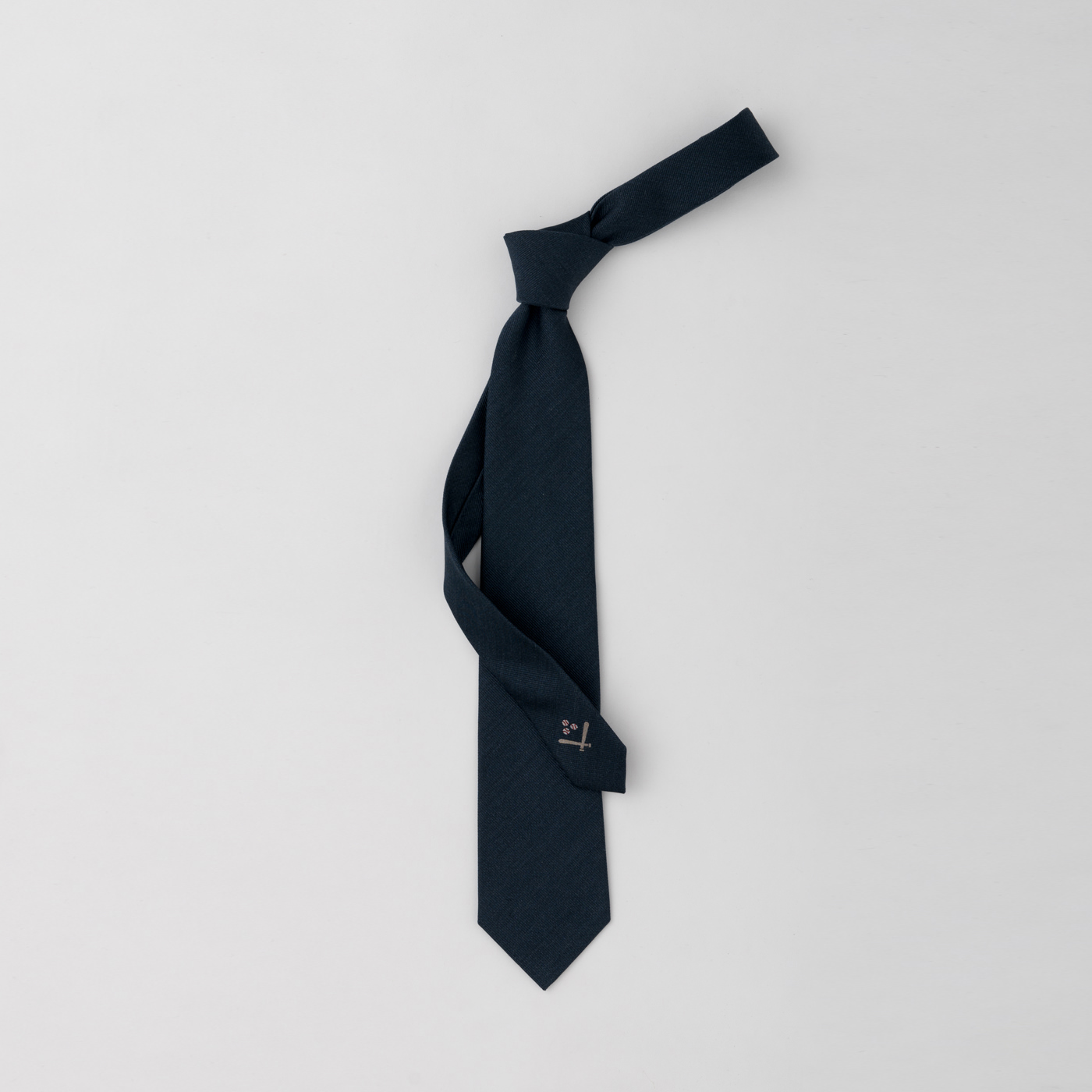 熟練の職人と共同開発で織りあげられた独特の質感のシルクネクタイはどんなラペル幅のスーツにも合わせ易い8cm幅で作られています。