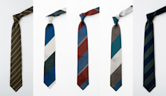 斜めストライプのネクタイを「レジメンタルタイ」といいます。ストライプは細いものから太いものまであり、色の配色もさまざまです。