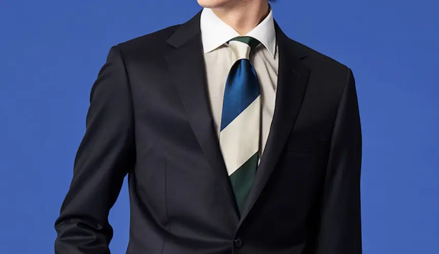 スマートでかっこよくネイビースーツを着こなすには、シーンに合わせたネクタイ選びがポイントです。