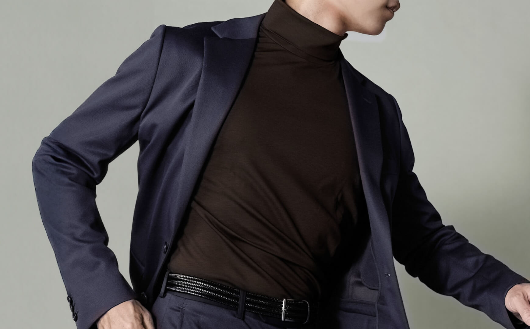 首もとに程よい高さを持たせた、上品なシルエット。ジャケットの中でもバランスよく見える設計で、一枚でもスマートに着こなせます。