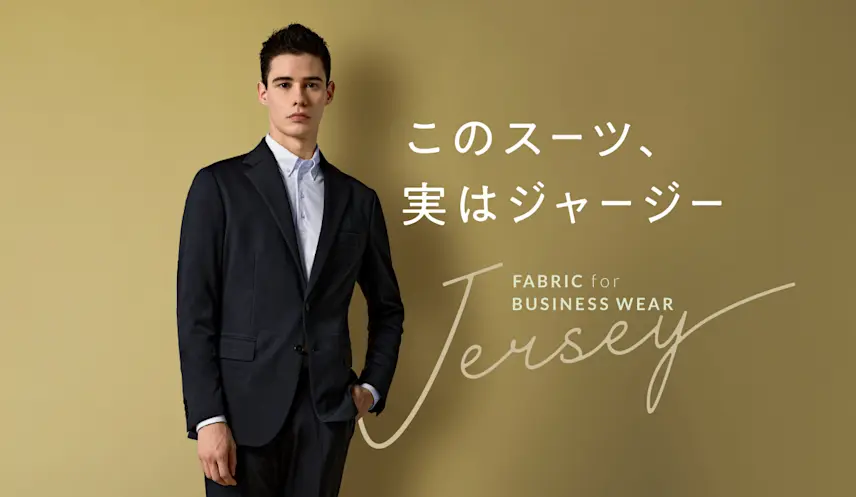 さらに、2段染めをしたり立体感が出るような仕上げにしたりと、細部にまでこだわりビジネスシーンに最適なジャージー生地が誕生しました。