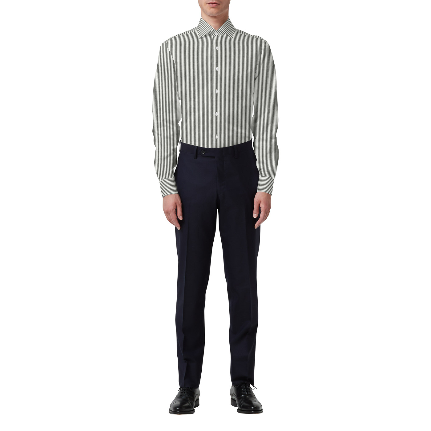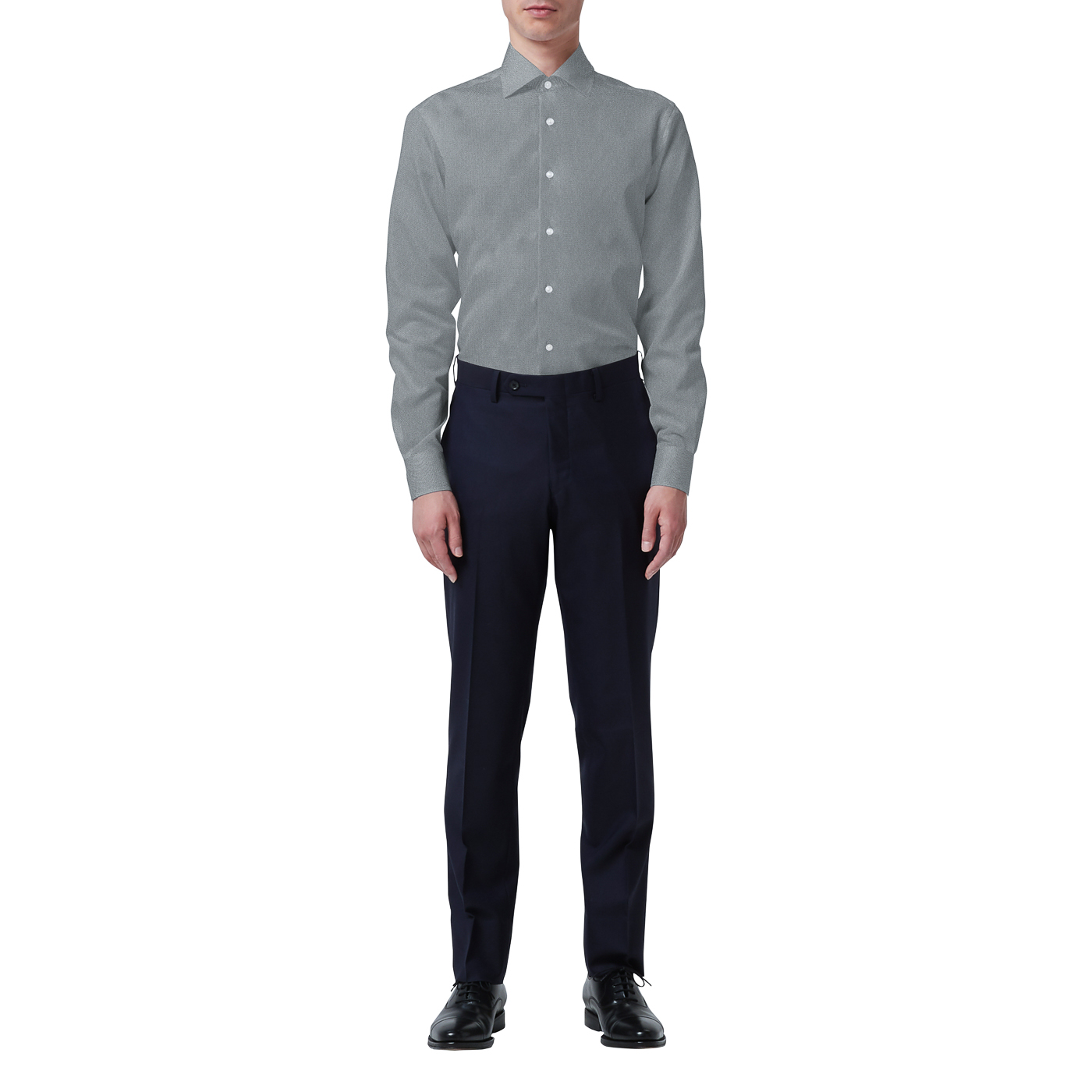 サイズ感も印象を大きく左右します。ビジネスで着用するのであれば、ジャストフィットなサイズ感がマスト。流行のオーバーすぎるサイズはダラシなく見え、逆にピタピタだと頑張りすぎている感じがでやすいのであまりおすすめできません。