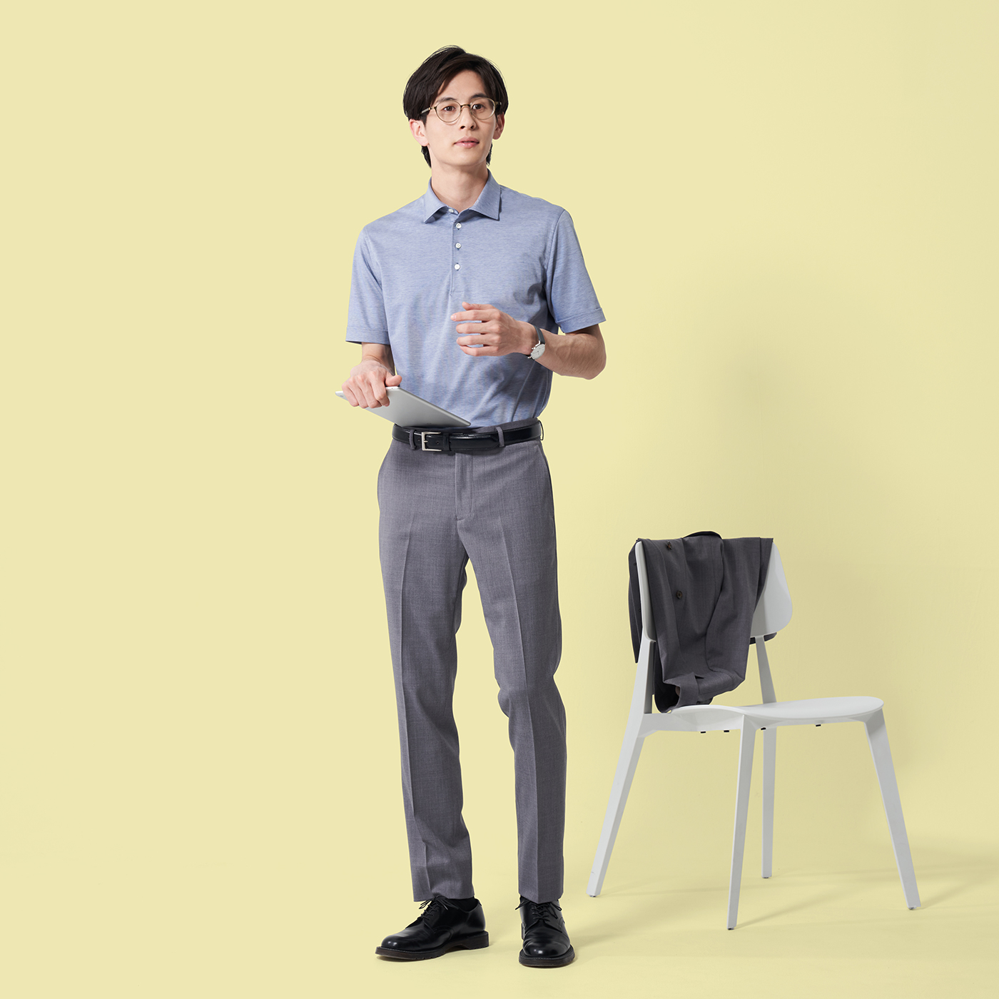 人気の理由はウールを混紡したきれいな見た目。ビジネスシーンに必要な「きちんと感」が備わっているのが魅力です。