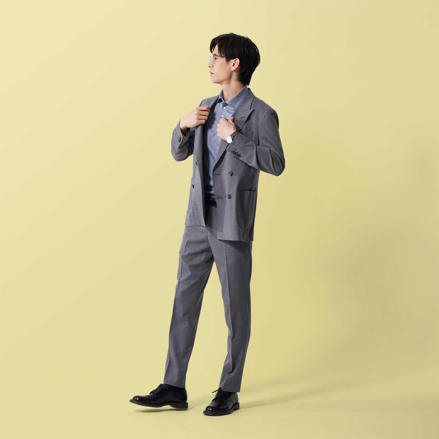 ジャケットとパンツは同素材のセットアップになっているのが大事なポイント。