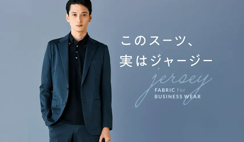 「ジャージー生地」はビジネスウェアとしても、プライベート用としても着用可能。