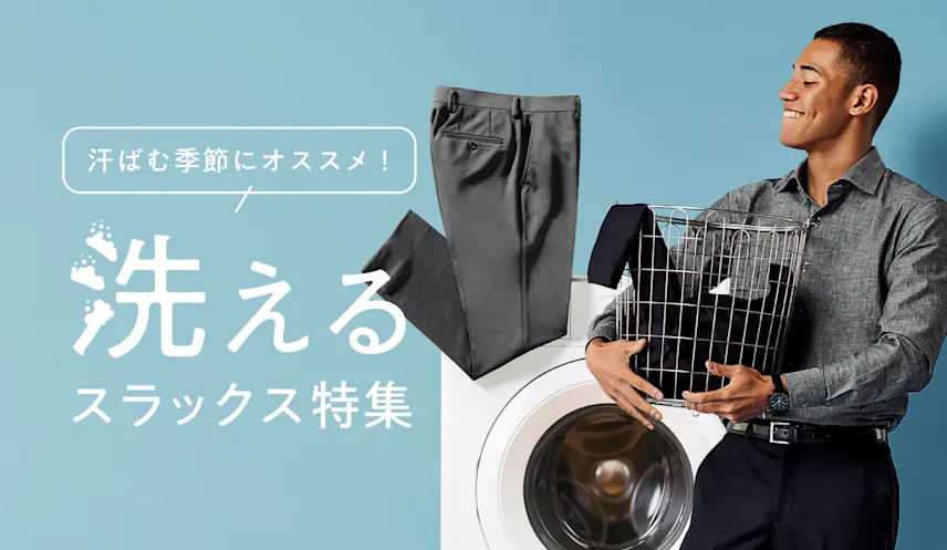 夏のビジネスシーンでも手を抜けないのが清潔感。汗をかいても自宅で洗濯できるスラックスは、いつでも清潔さを保てるのが魅力です。