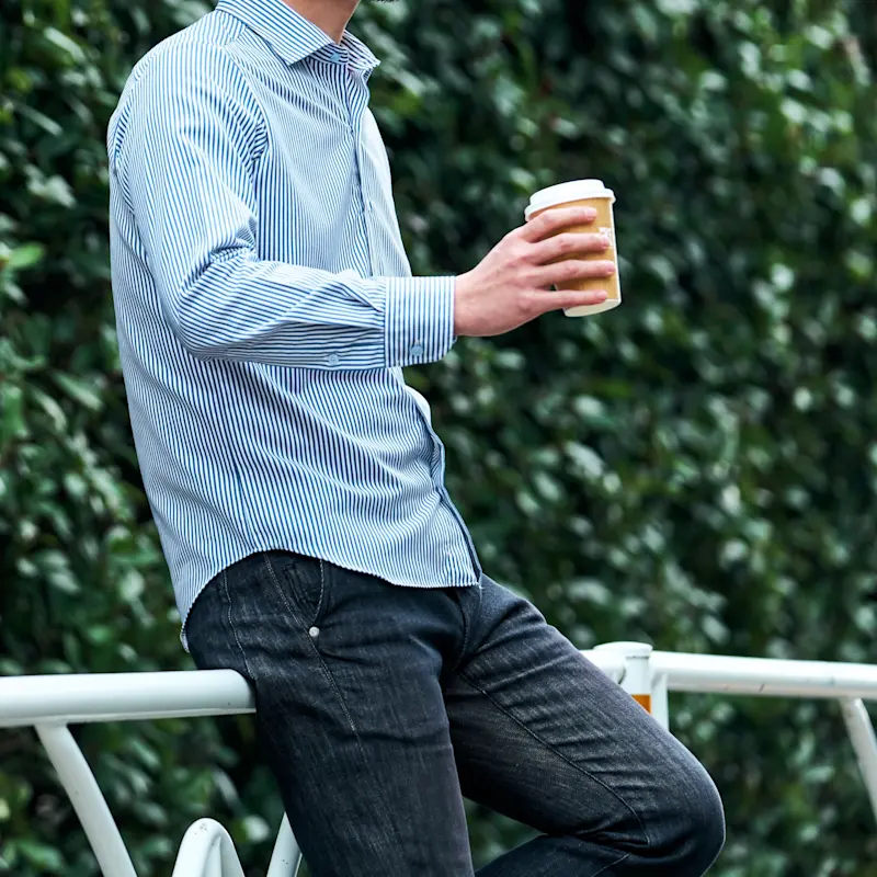 光の透過を遮断し、驚きの透けにくさを実現。汗染みも目立ちにくく、ストレッチ性やノンアイロン性も兼ね備えた高機能シャツです。