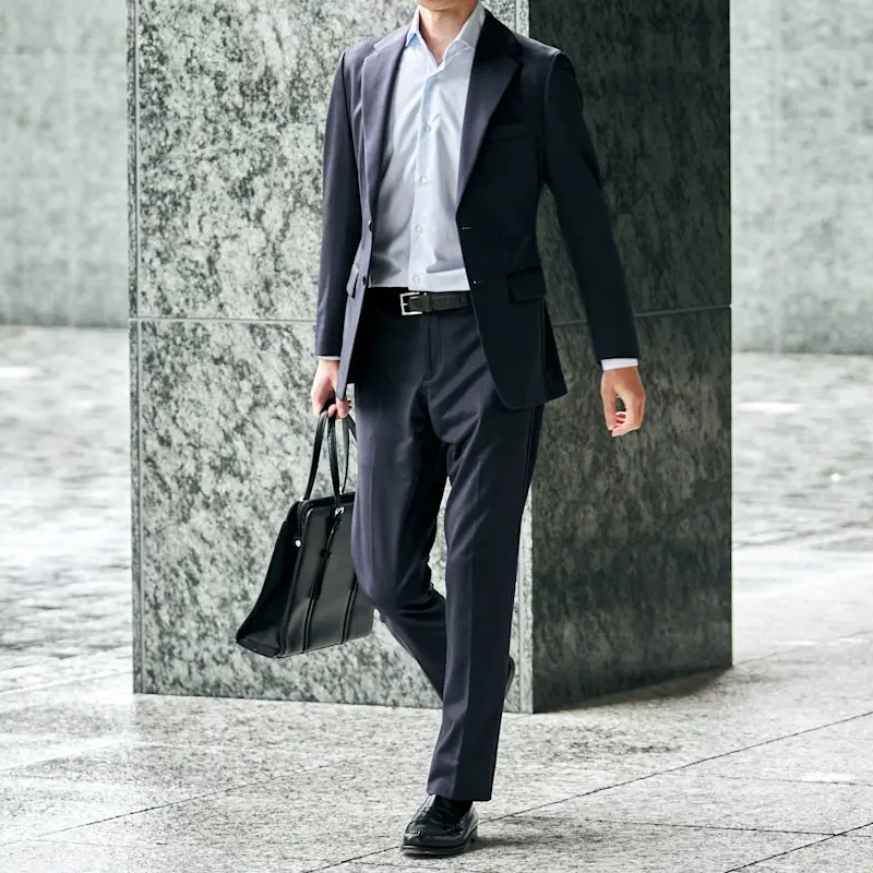 ビジネスシーンの新定番。きれいな光沢が特長の「スーツ見え」ジャージー。