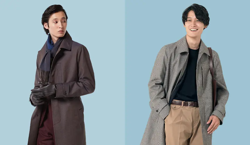 ビジネスコートと言えばステンカラーかスタンドカラーかというほど一般的なデザインですが、実はステンカラーコートは使われる素材や仕立て方の種類がとても多いコートでもあります。