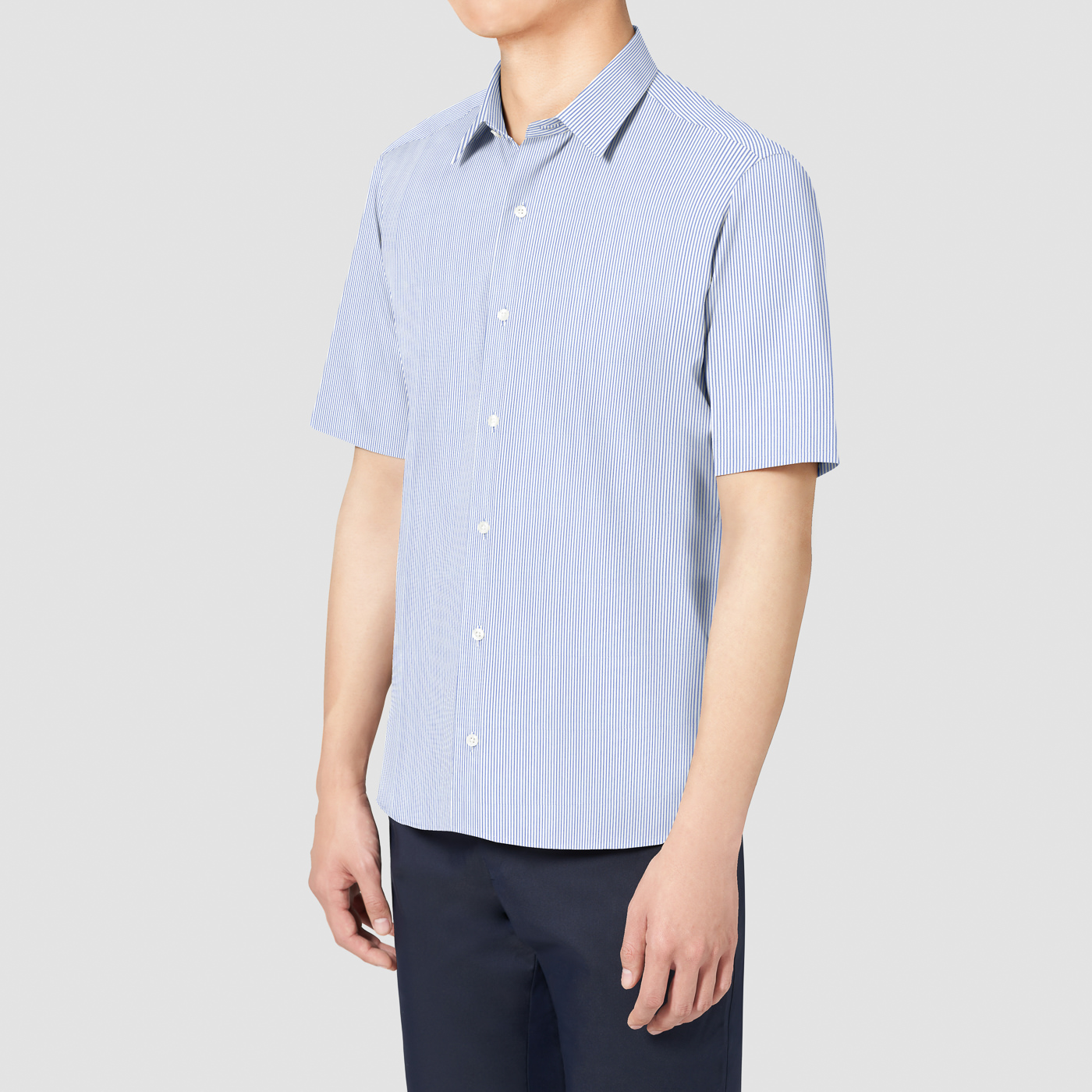 フォーマルシャツは、タックインした時にすっきり見えるよう、胴回りにぴったり沿うようなシルエットです。