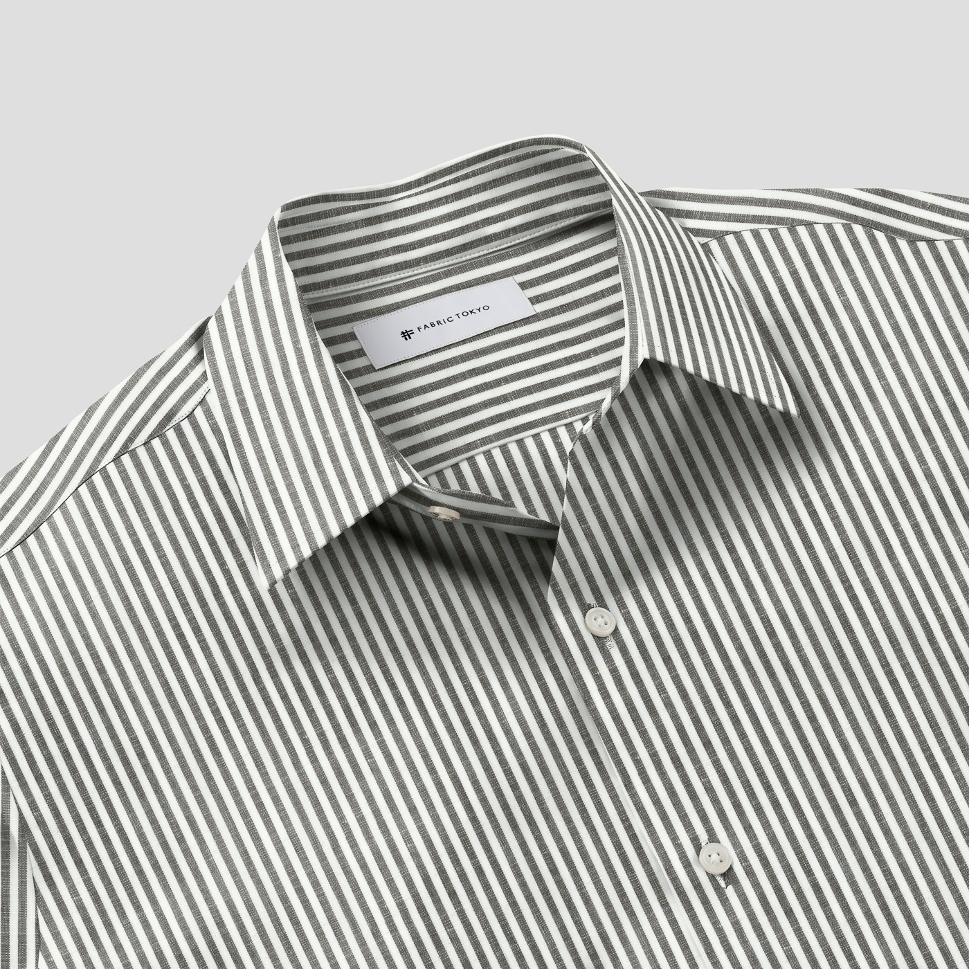 高級リネンとして高評価を得ている老舗の紡績メーカーの生地を使用。リネンらしい通気性や肌あたりの良さを持ちつつ、コットンを織り交ぜることでシワを軽減しています。相性の良いカスタマイズは「ショートワイド」「袖口ノーマル」「フレンチフロント」「ポケットなし」