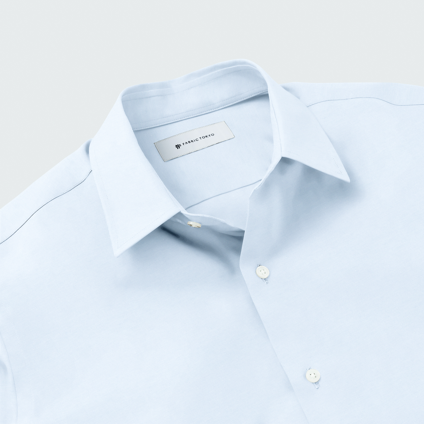 既製品で人気だったFORMAL POLOの生地を採用。ドレッシーな艶とハリ感があるのが特長で、さらに透けにくさや接触冷感といった機能も魅力です。相性の良いカスタマイズは「ショートワイド」「袖口ターンナップ」「プラケットフロント」「ポケット付き」