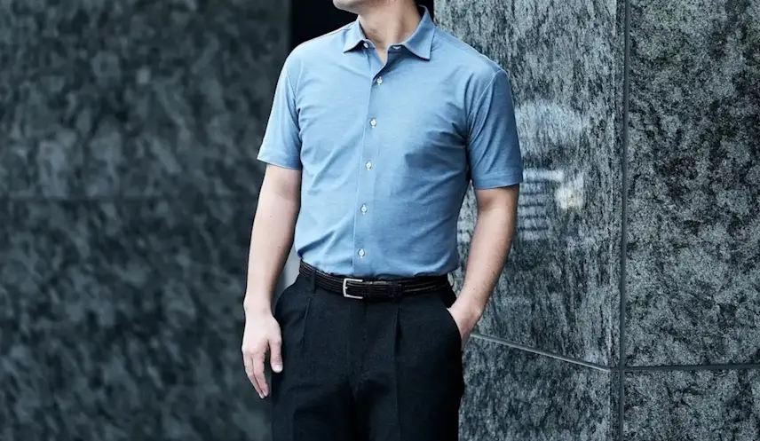 ジャージーシャツは「編み物」で作られていて、伸縮性に優れていてストレッチ性があるだけでなく、通気性が高くシワになりにくいのが魅力です。高温多湿の日本の夏を乗り換えるには適した生地ですが、一方でカジュアルな雰囲気があるので大事な商談などではあまりおすすめできません。