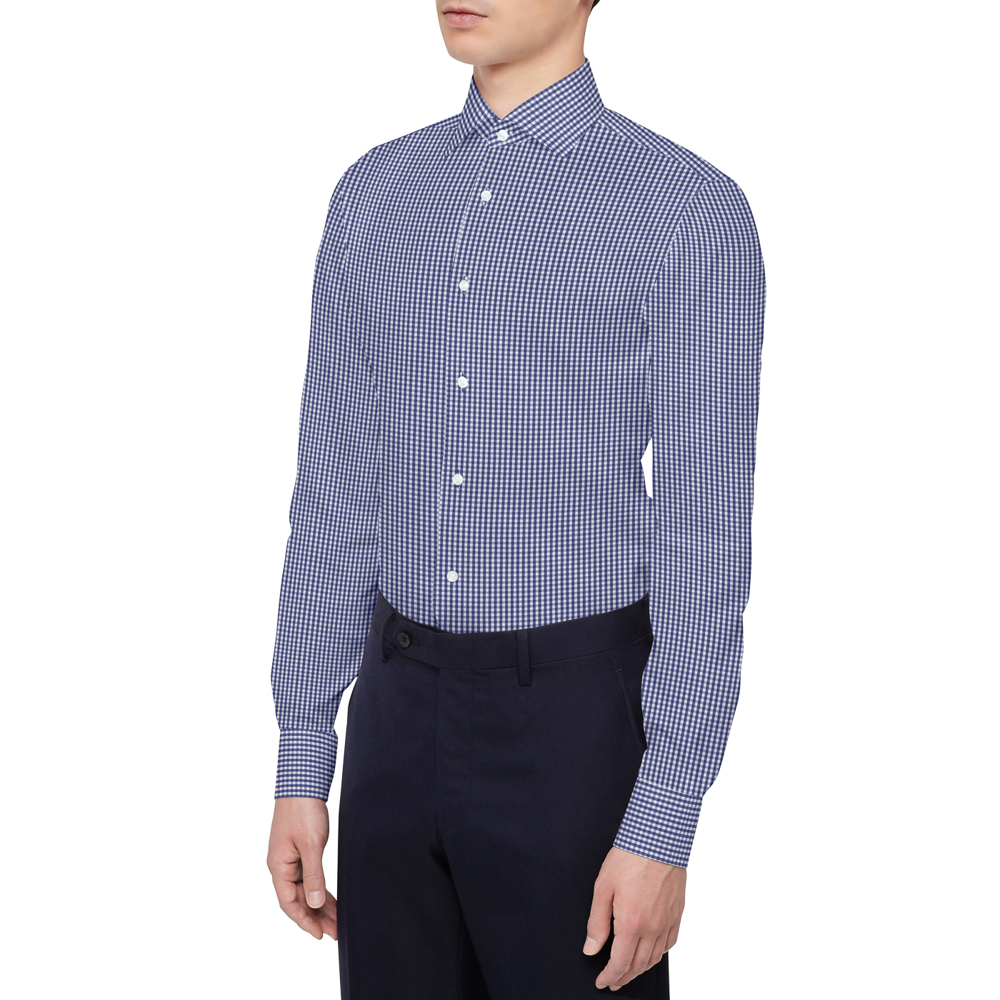 4-1. 【ビジネスカジュアル向け】ネイビーギンガムチェックシャツ