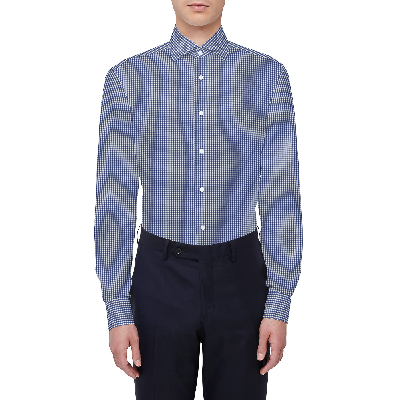 4-1. 【ビジネスカジュアル向け】ネイビーギンガムチェックシャツ