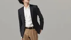 ネクタイを締めないときは、ラペル幅が狭いジャケットがおすすめ。首回りがすっきりして見えます。一方、ネクタイを締めるときはネクタイの幅とラペル幅を統一することで、スーツ姿がおしゃれに決まります。