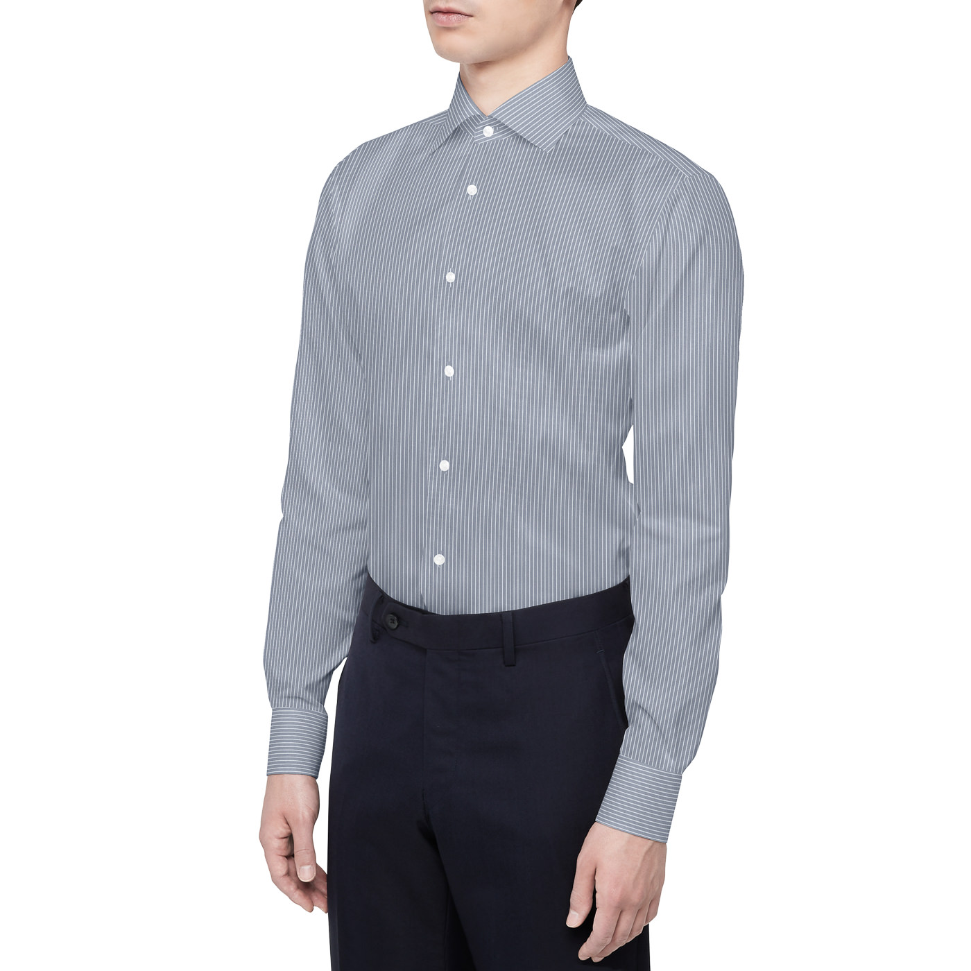 今回は主張のないストライプで実験していますが、はっきりしたストライプのシャツだと、カモフラージュ効果がより期待できそうです。