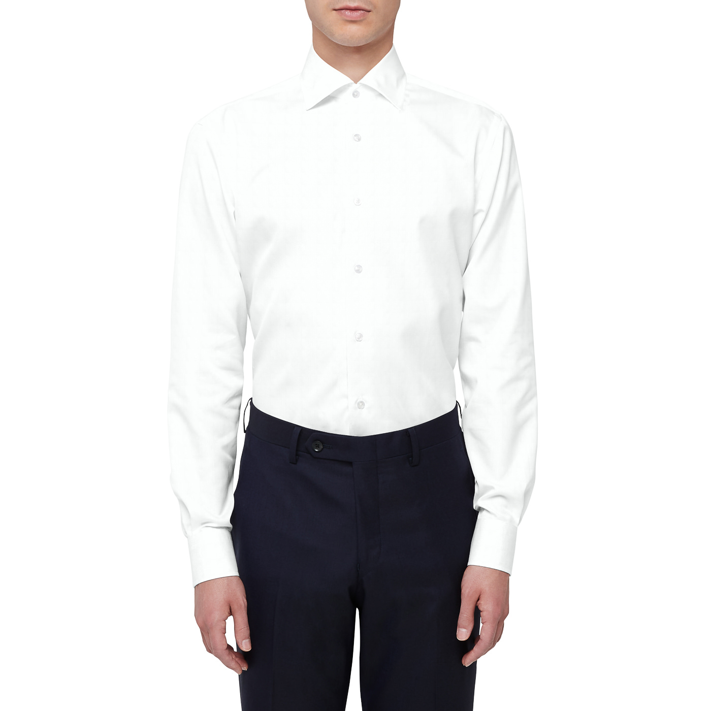 ウイングカラーシャツに欠かせないディテールが、「フライフロント(比翼仕立て)」。シャツの前立てを二重にして、ボタンが見えないようになっている仕様です。