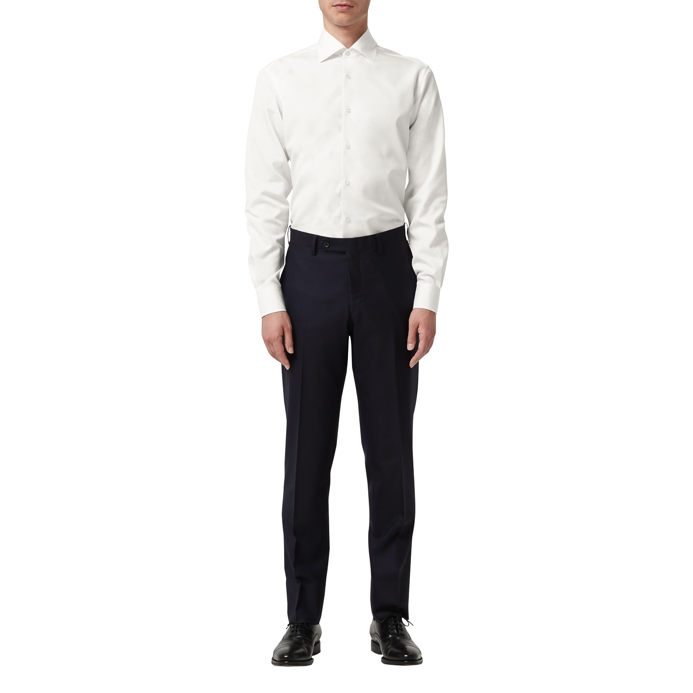 装飾が付いておらず、一般的なシャツとの違いは襟と比翼の仕立てのみで、スーツとの相性もよく爽やかな印象があります。