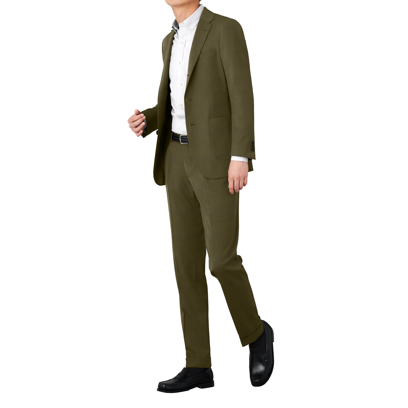 第1ボタンを開けたり、スニーカーやローファーを合わせたり。カジュアルな着こなしもおすすめです。