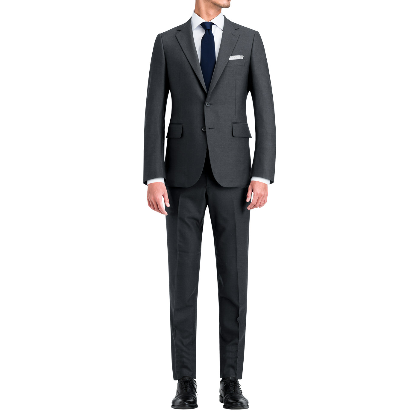 安定した人気のチャコールで、汎用性の高いツーピーススーツです。主にビジネスシーン向けで、普段使いに便利な仕様となっています。