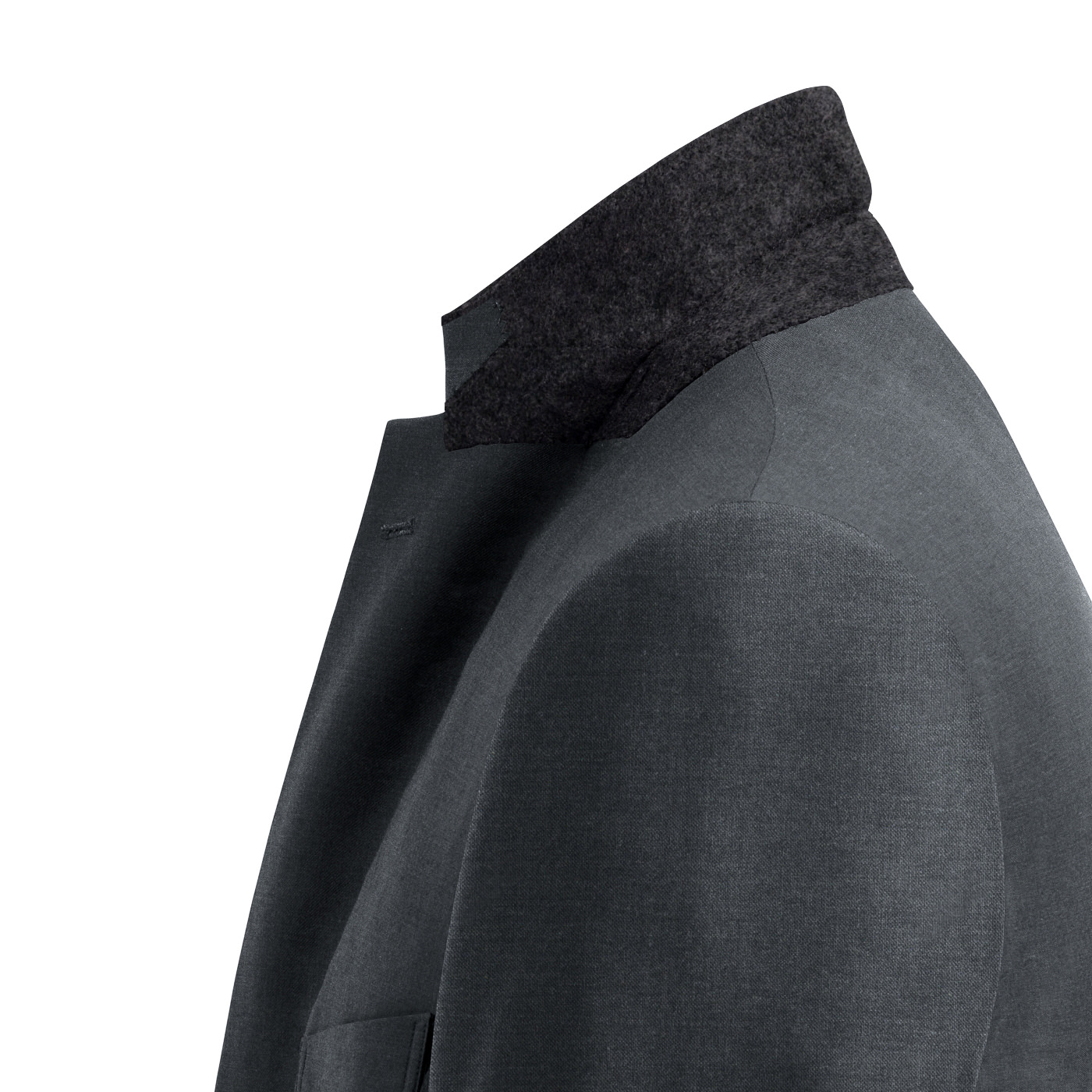 プンタウールは復元力が強くてシワになりにくい性質がある一方、毛羽立ちやすいという弱点がありました。しかし、特別な最終加工を二度行うことで美しい生地表面を実現することに成功。表面が美しい仕上がりになっているだけでなく、湿気に強いのも特徴のひとつ。カラーは人気のネイビーの他、グレーやブラックなども用意しています。