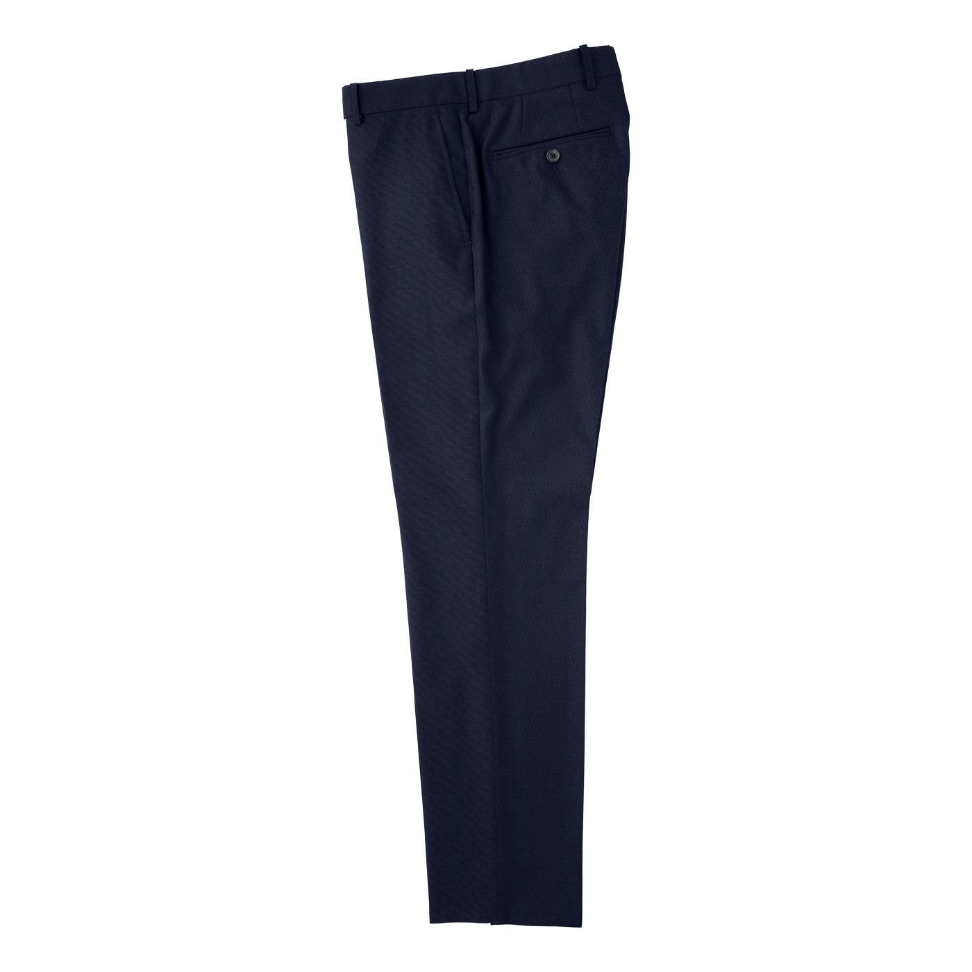プンタウールは復元力が強くてシワになりにくい性質がある一方、毛羽立ちやすいという弱点がありました。しかし、特別な最終加工を二度行うことで美しい生地表面を実現することに成功。表面が美しい仕上がりになっているだけでなく、湿気に強いのも特徴のひとつ。カラーは人気のネイビーの他、グレーやブラックなども用意しています。