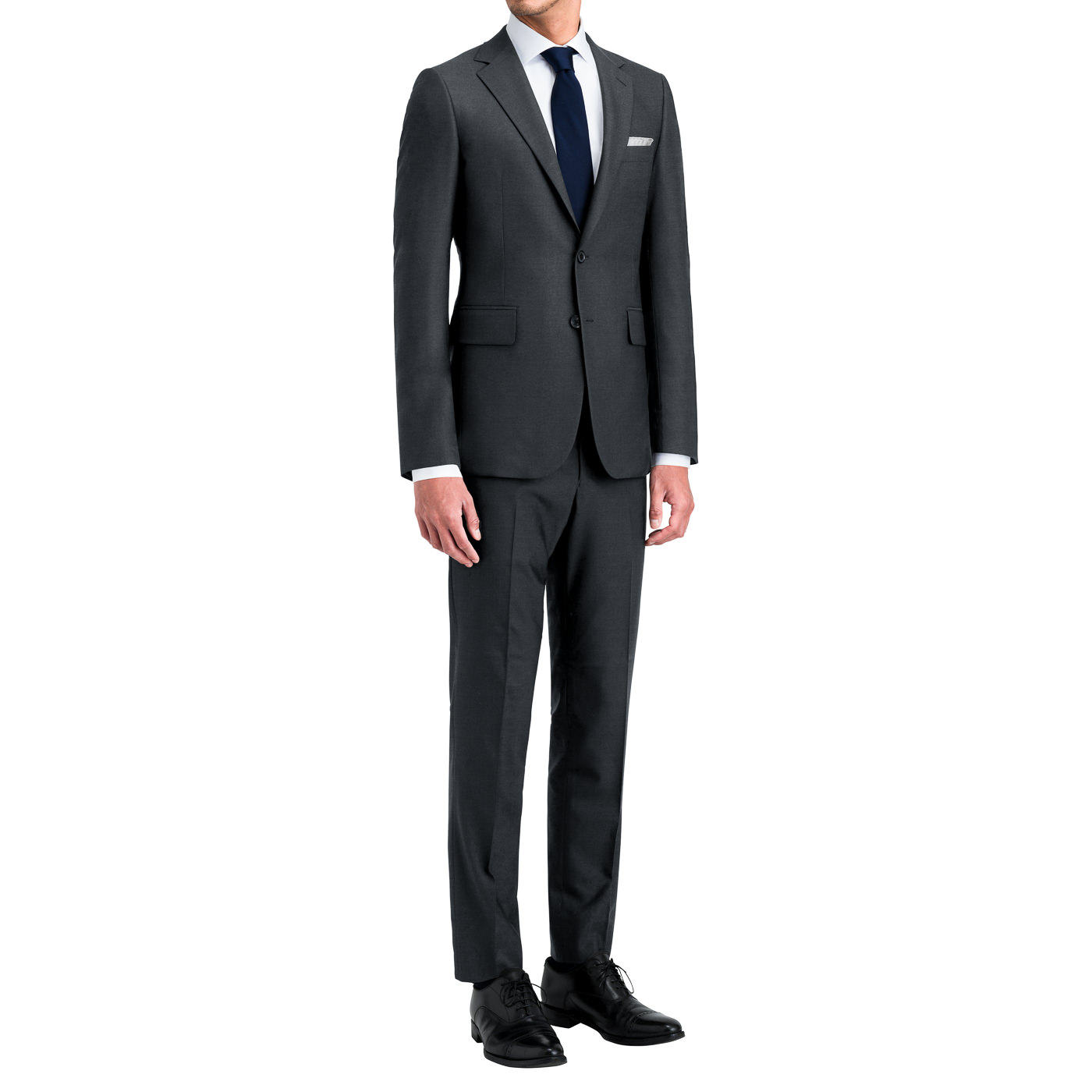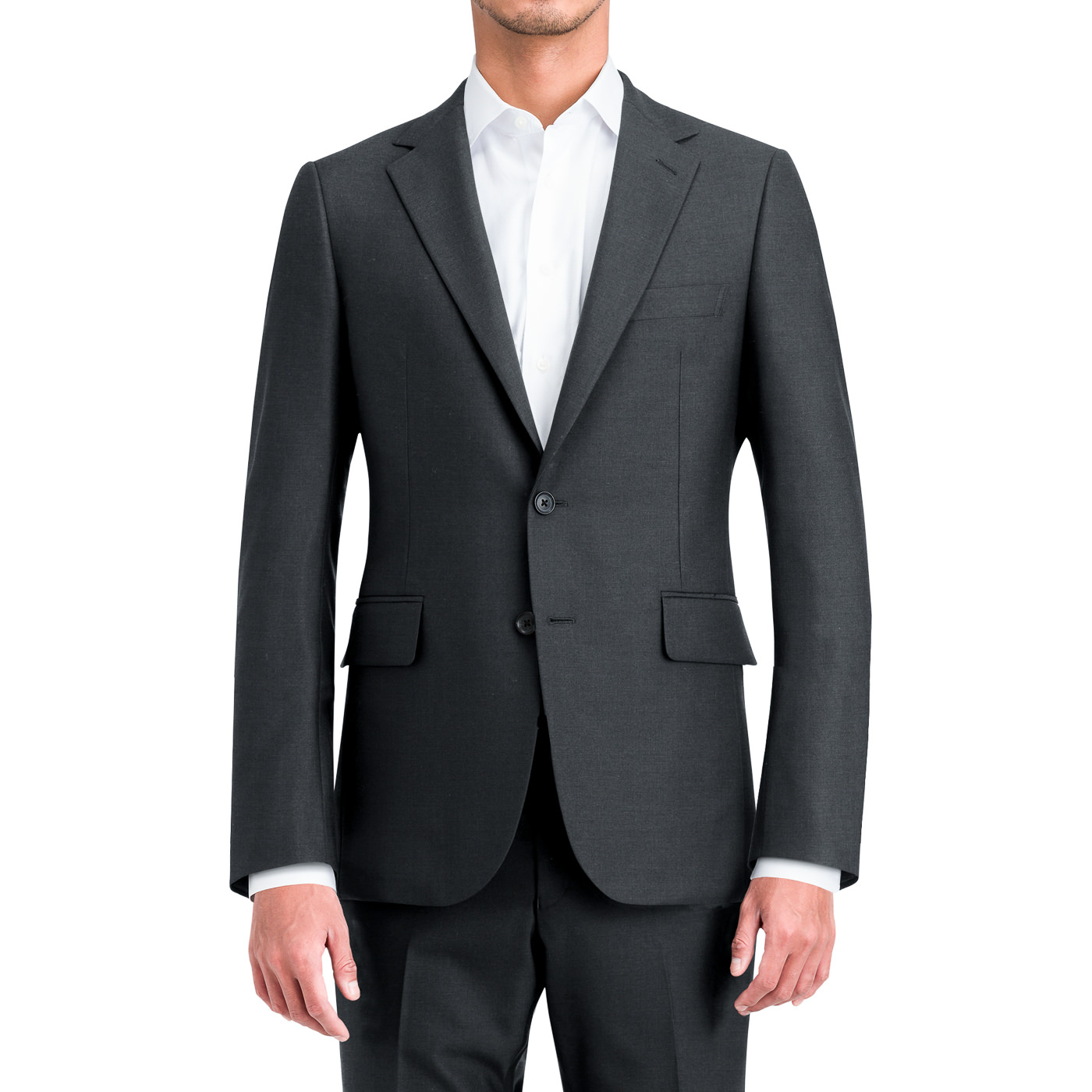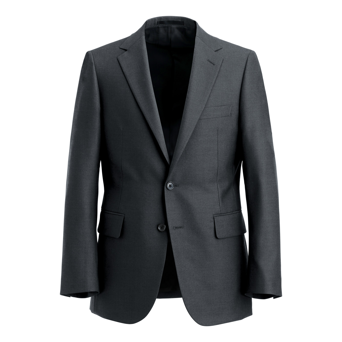安定した人気のチャコールで、汎用性の高いツーピーススーツです。主にビジネスシーン向けで、普段使いに便利な仕様となっています。