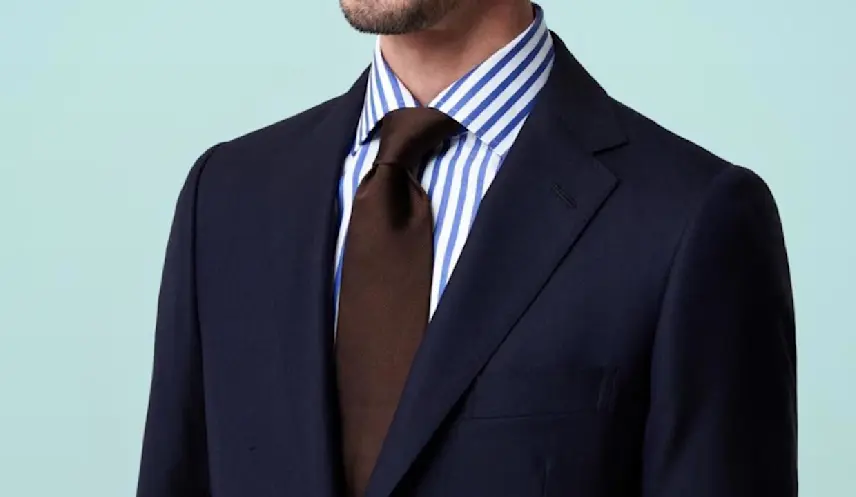 無地のブラウンネクタイを合わせれば、お互いの色を引き立ててくれます。大人の洗練された着こなしで、会議やプレゼンの場で信頼を勝ち取れるでしょう。