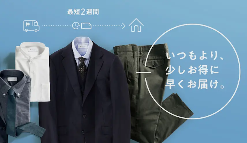 結婚式などの着用予定が決まっていて急ぎでスーツが必要となったことや、約2週間で届くので季節が変わる前に着用したいというお客さまにもおすすめのオプションです。