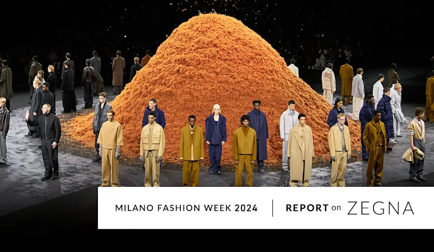 ここ数年は、ミラノファッションウィークのフィナーレを飾っているが、それはショーの後、モデルたちがランウェイに残って整列し、招待客に間近で洋服を披露するという演出をする為でもあるだろう(ファッションウィーク期間中は、次に控えているショーや展示会へと駆け足で移動してしまうゲストたちも、最後のショーならゆっくり会場に留まることができるからだ)。今やお馴染みとなったこの演出は、「ゼニア」の素材や仕立てへの自信と思い入れを象徴している。