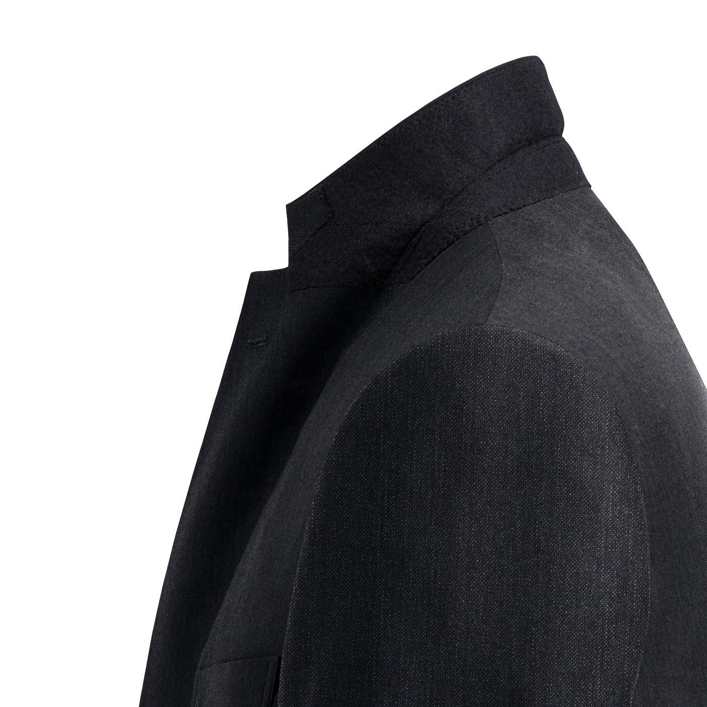 顧客との重要な商談でも洗練した印象を与えられる一着。光沢感があって仕立て映えする生地なので、ビジネスシーンだけでなく結婚式などの冠婚葬祭でも活躍します。