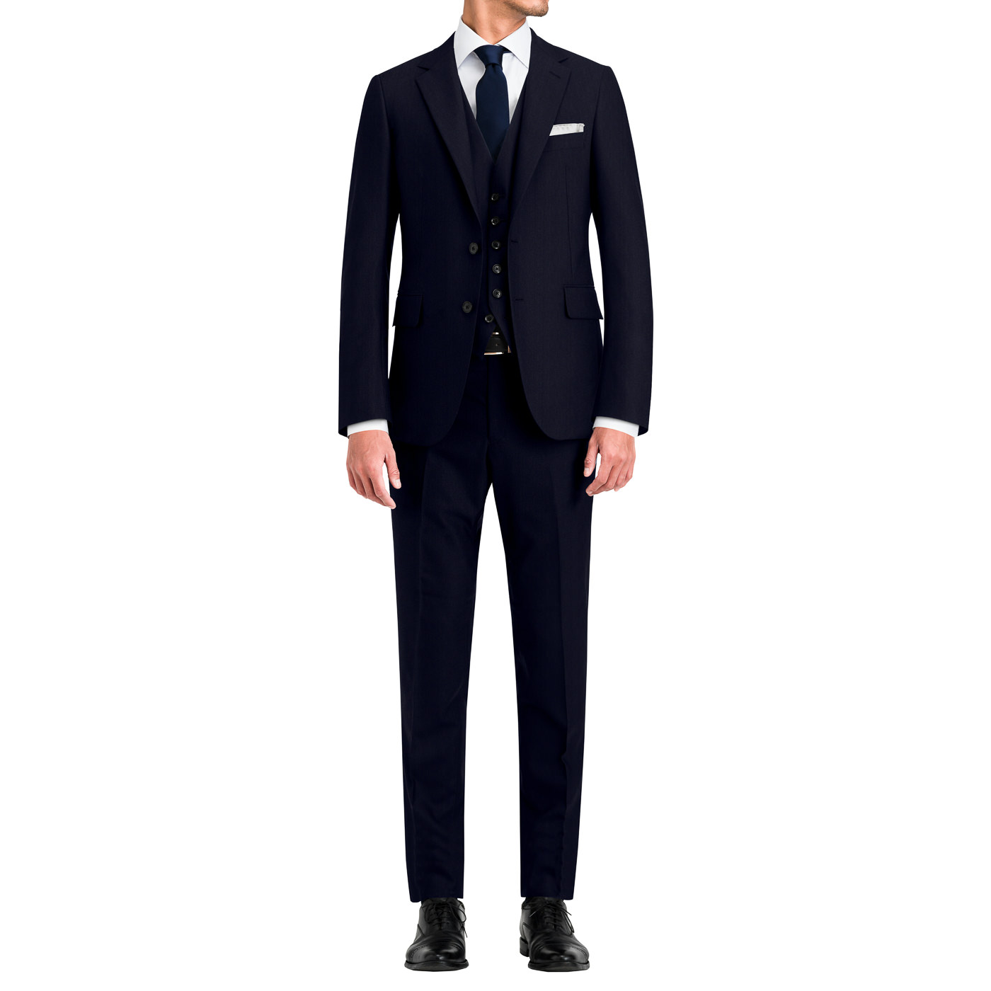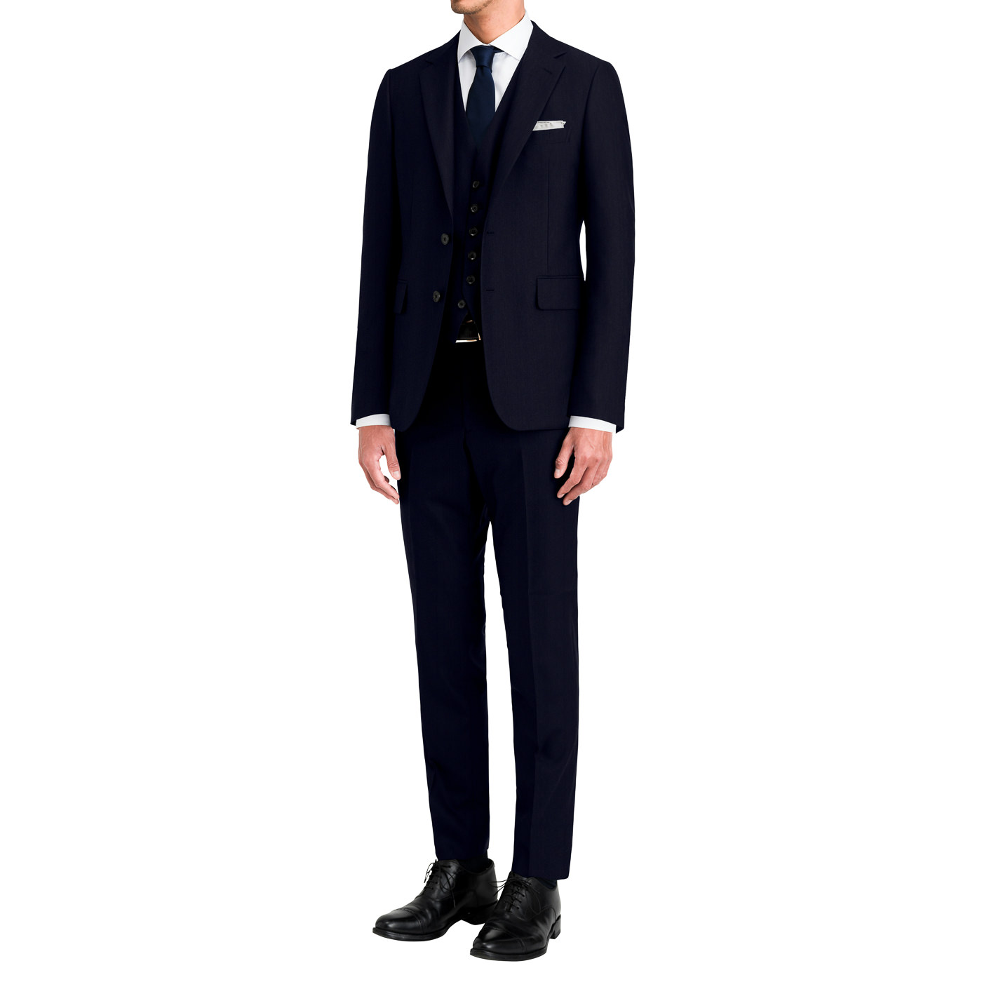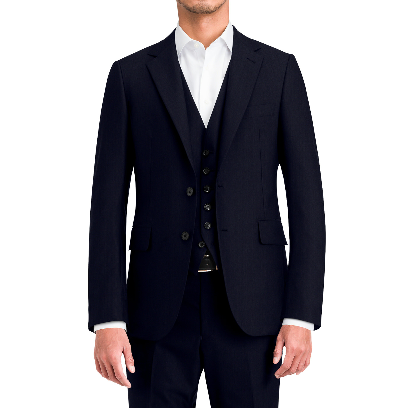 ディープダークネイビーは人を選ばず着れる色なので、「自分でもスリーピーススーツ着れるかな」と不安な方にもおすすめです。