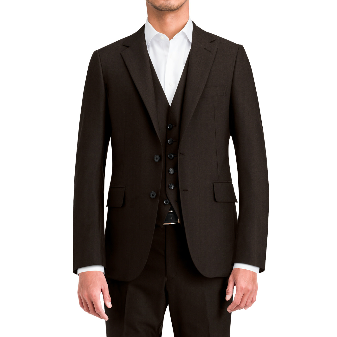 スリーピーススーツの正しい着こなしは、パンツのボタン部分がベストに隠れていることが基本です。ベルトも極力見えないようにしましょう。
