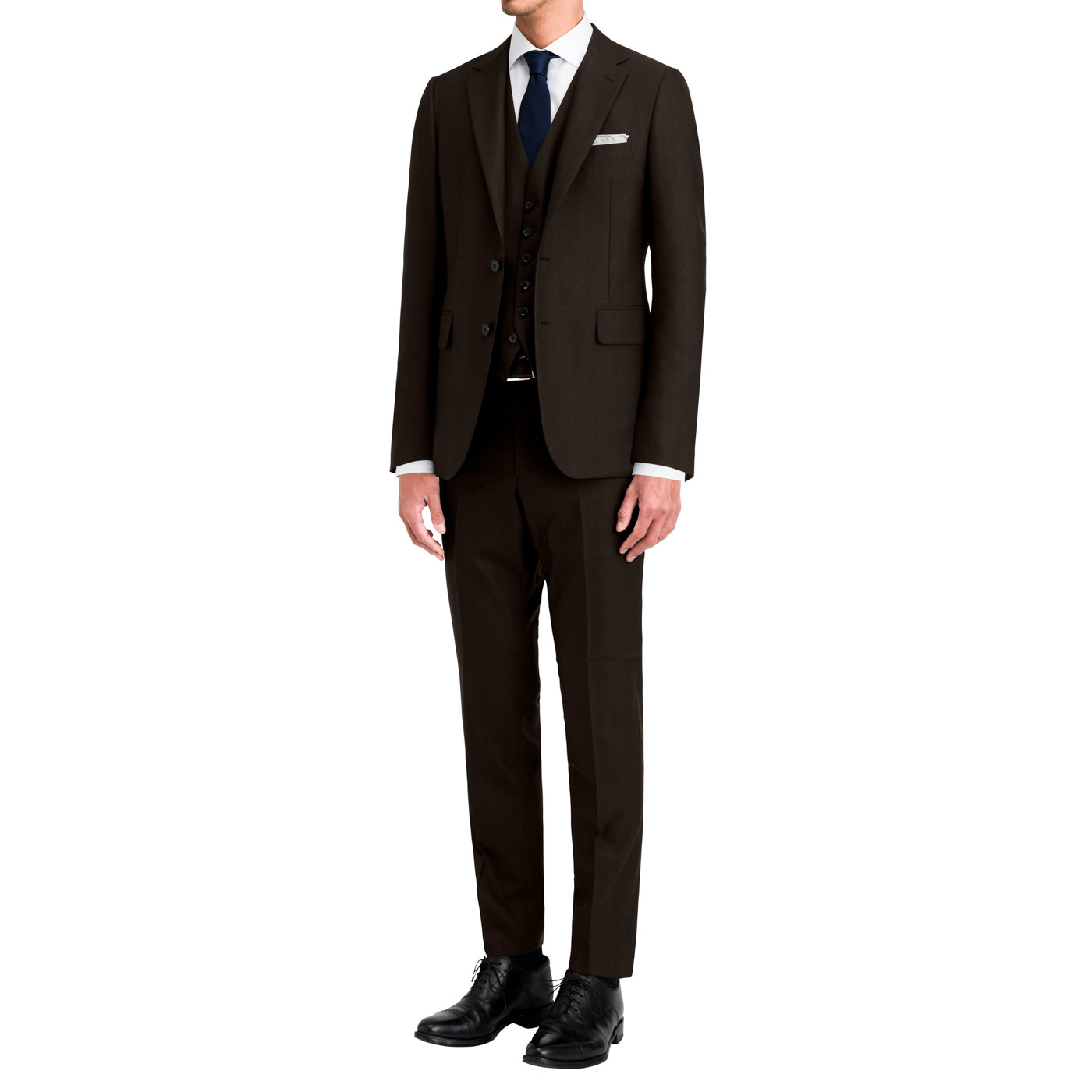 ツーピーススーツよりもさらに重厚でクラシカルな印象を与え、ワンランク上の着こなしが完成します。