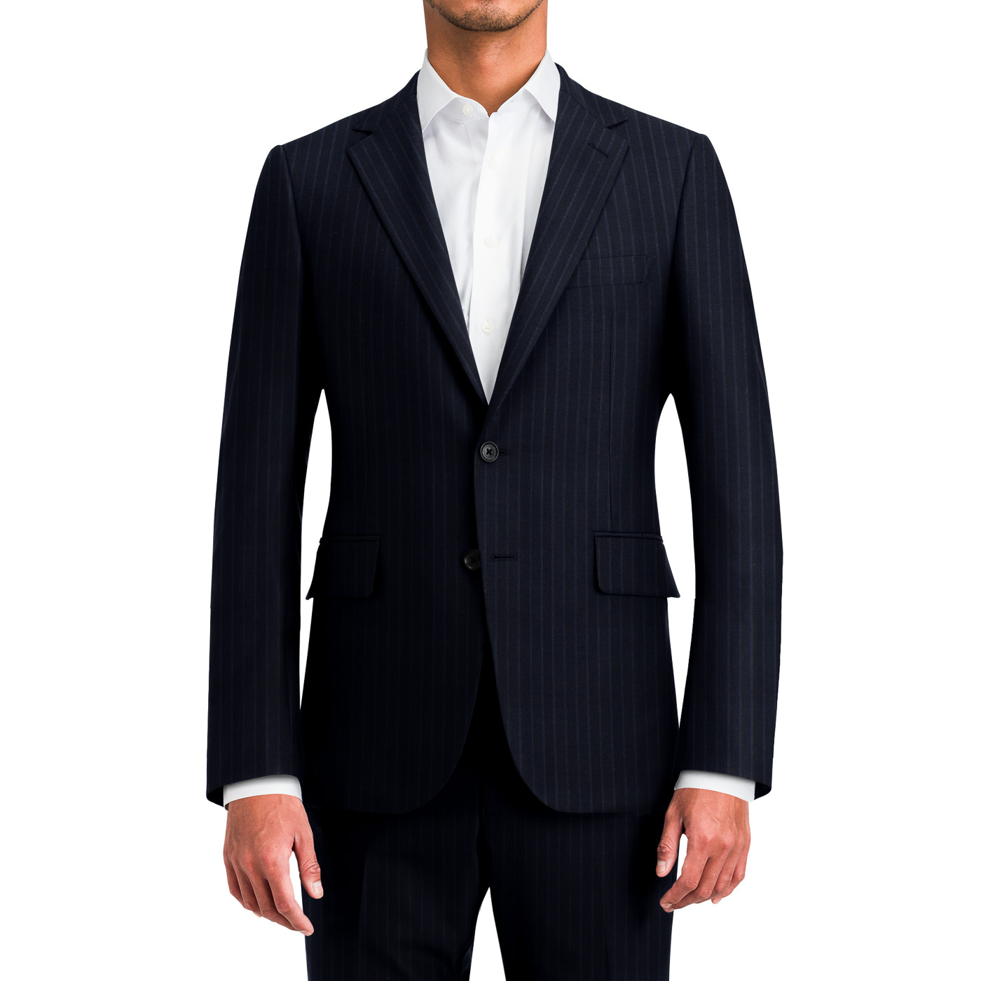 英国では、風格のあるビジネスウェアといえばピンストライプのダークネイビースーツが定番です。