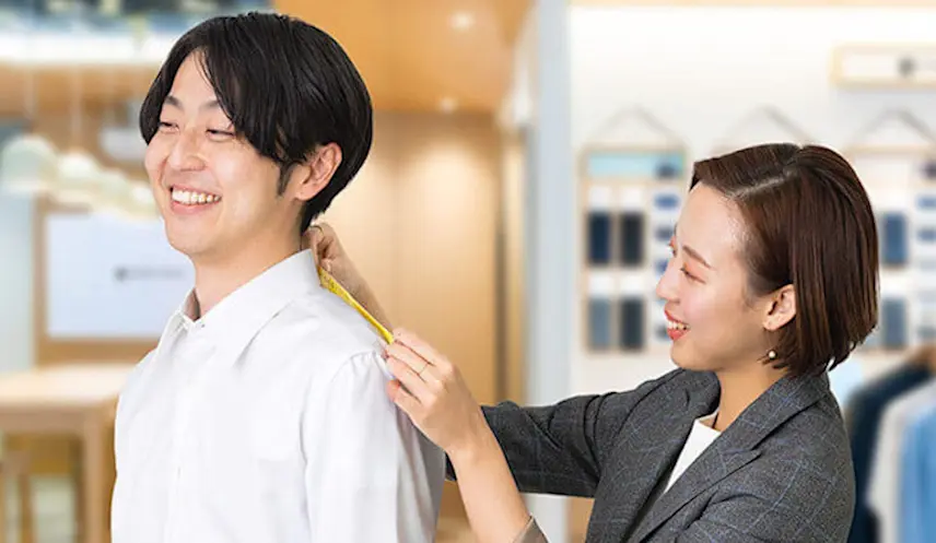 ビジネスウェアのオーダー専門店「FABRIC TOKYO」では、プロのスタッフがお客さまの体のサイズを10箇所以上計測します。