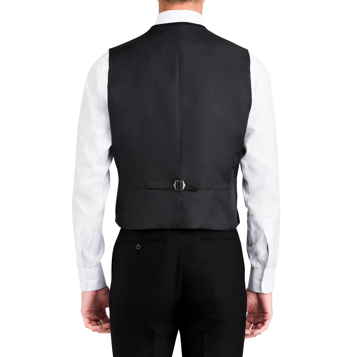ジャケットやパンツと同様に、カッコよくベストを着こなすにはサイズ感が大切です。ベストとパンツの間からシャツが見えてしまうと台無しに……。バックスタイルのベスト丈は、ベルトがちょうど隠れる程度に合わせましょう。自分の体型に合ったジャストサイズを選ぶことが何よりも重要です。