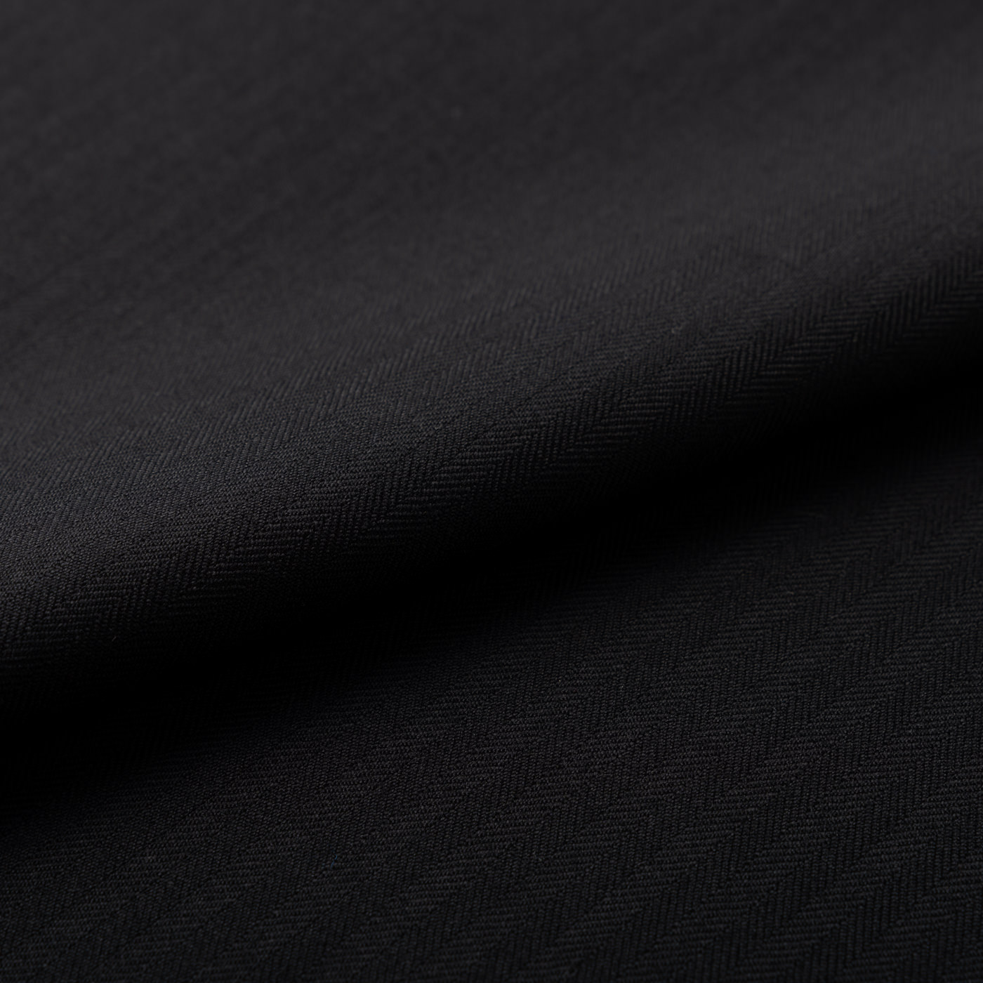 こちらは定番のブラックカラーのベストです。ヘリンボーン仕様の縫い目模様が施されているなど、全体的に柔らかな雰囲気となっています。