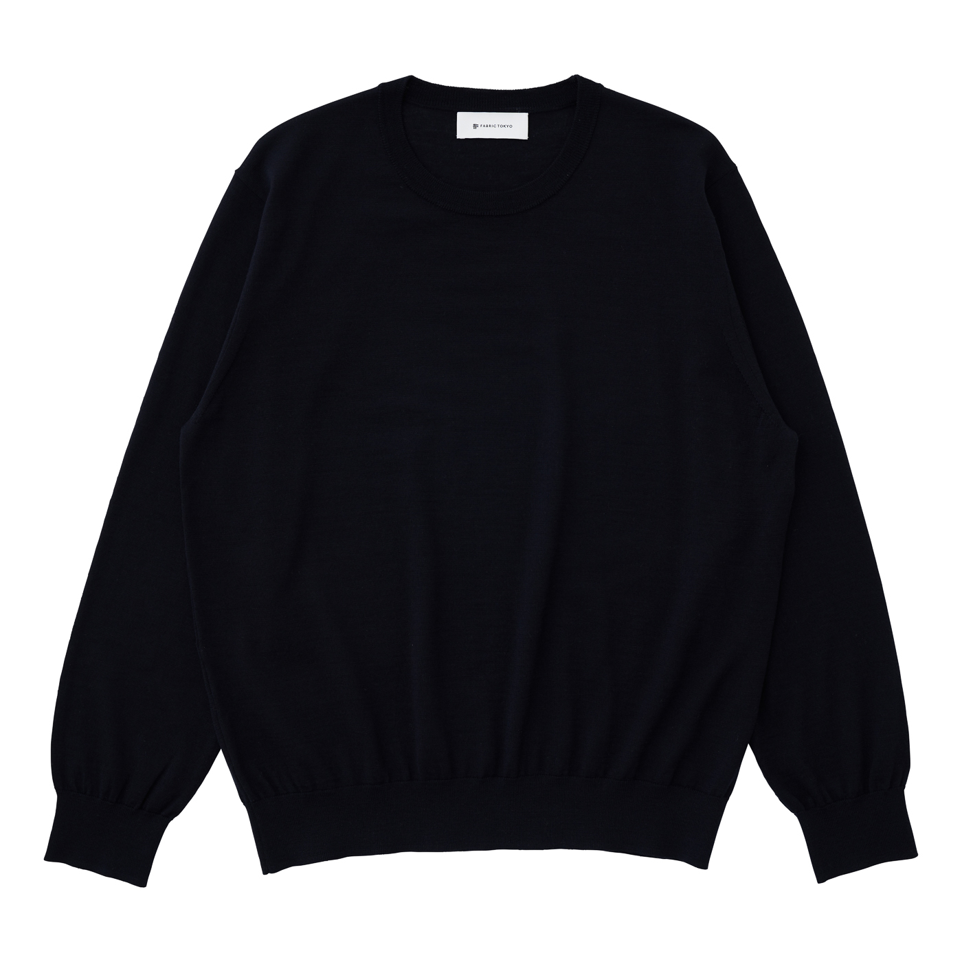FABRIC TOKYOのセーターはハイゲージの16ゲージで、適度な肉厚感があってオールシーズン着用できるのがポイント。エクストラファインメリノウールを使用しているので、適度なツヤがあり、肌触りも滑らかに仕上がっています。