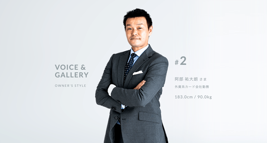 阿部さま:体型の悩みは、お尻と太ももが異様に大きい所です。市販のスーツではジャストなサイズはありません。