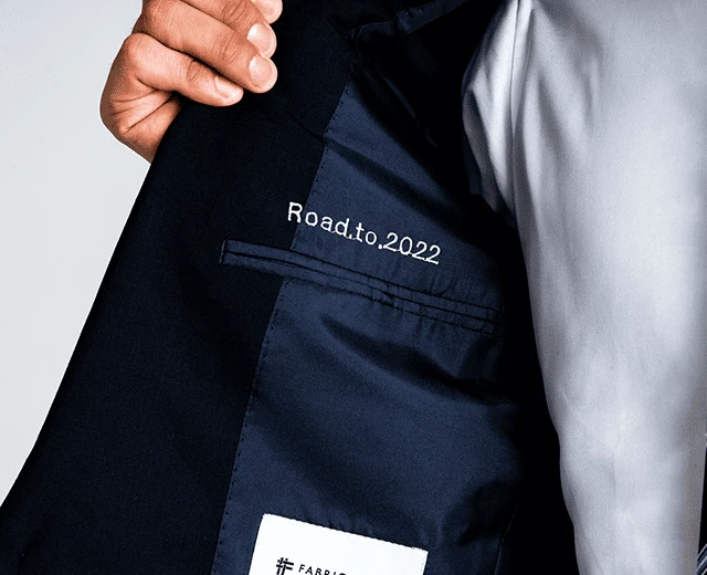 石川さま:今回ジャケットの裏地に「Road to 2022」と刺繍しました。2022年は私の目標である次期冬季オリンピックの年なのでで、いつでも意識できるように、覗くとすぐに見える位置に刺繍をしました。