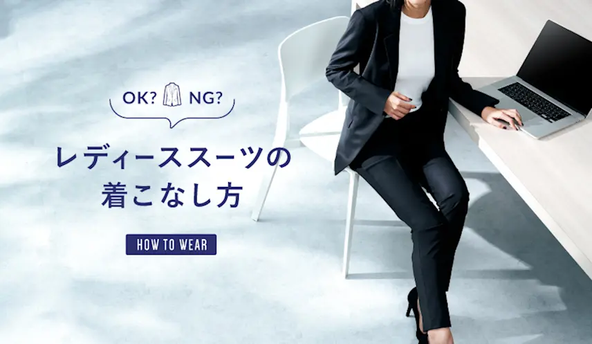 営業女性のレディーススーツの着こなしポイントや、NGルールなどについて紹介しました。