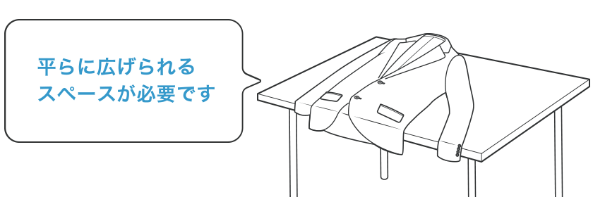 サイズを測定するために、スーツ・シャツを平らに広げられる場所を確保しましょう。床でも机でも、平らに広げることができる場所であればどこでも大丈夫です。