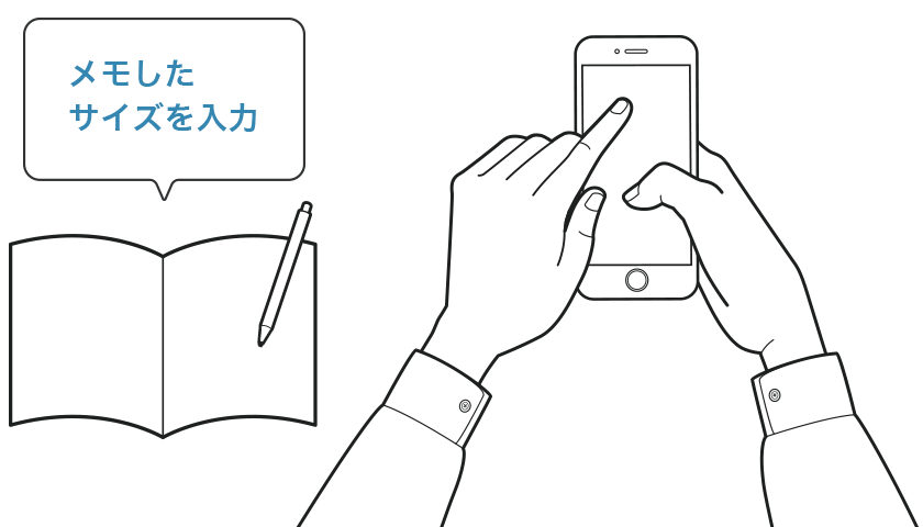さっそく採寸をはじめます。次の3つをお手元にそろえてください。