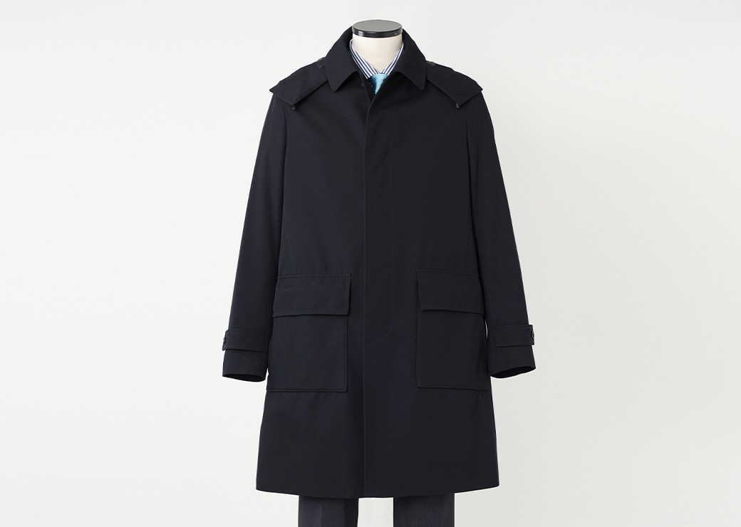 フードのデザインによって、オーダーコートの中でも特にカジュアルな印象に。